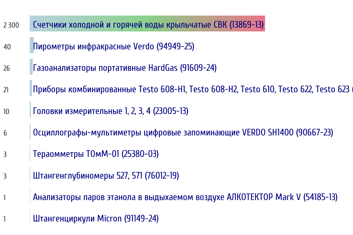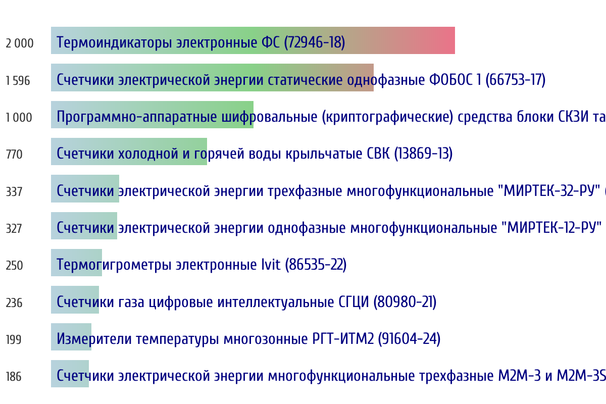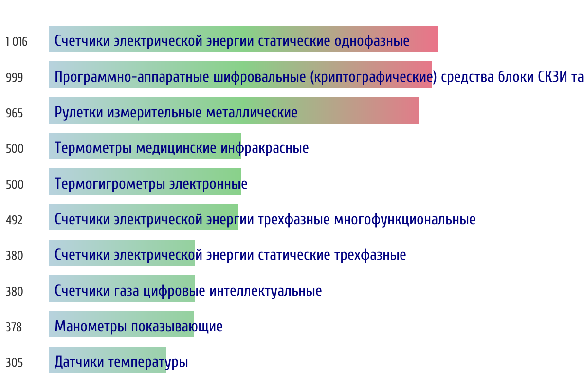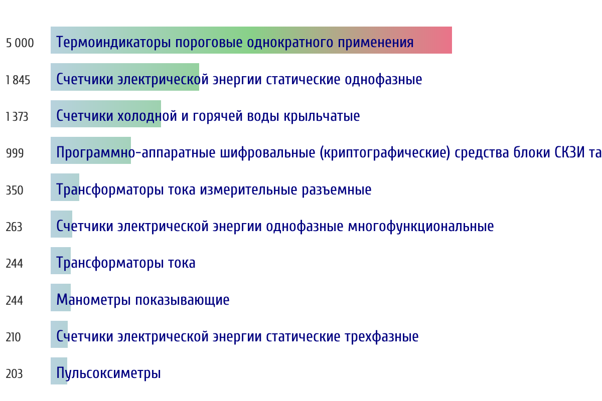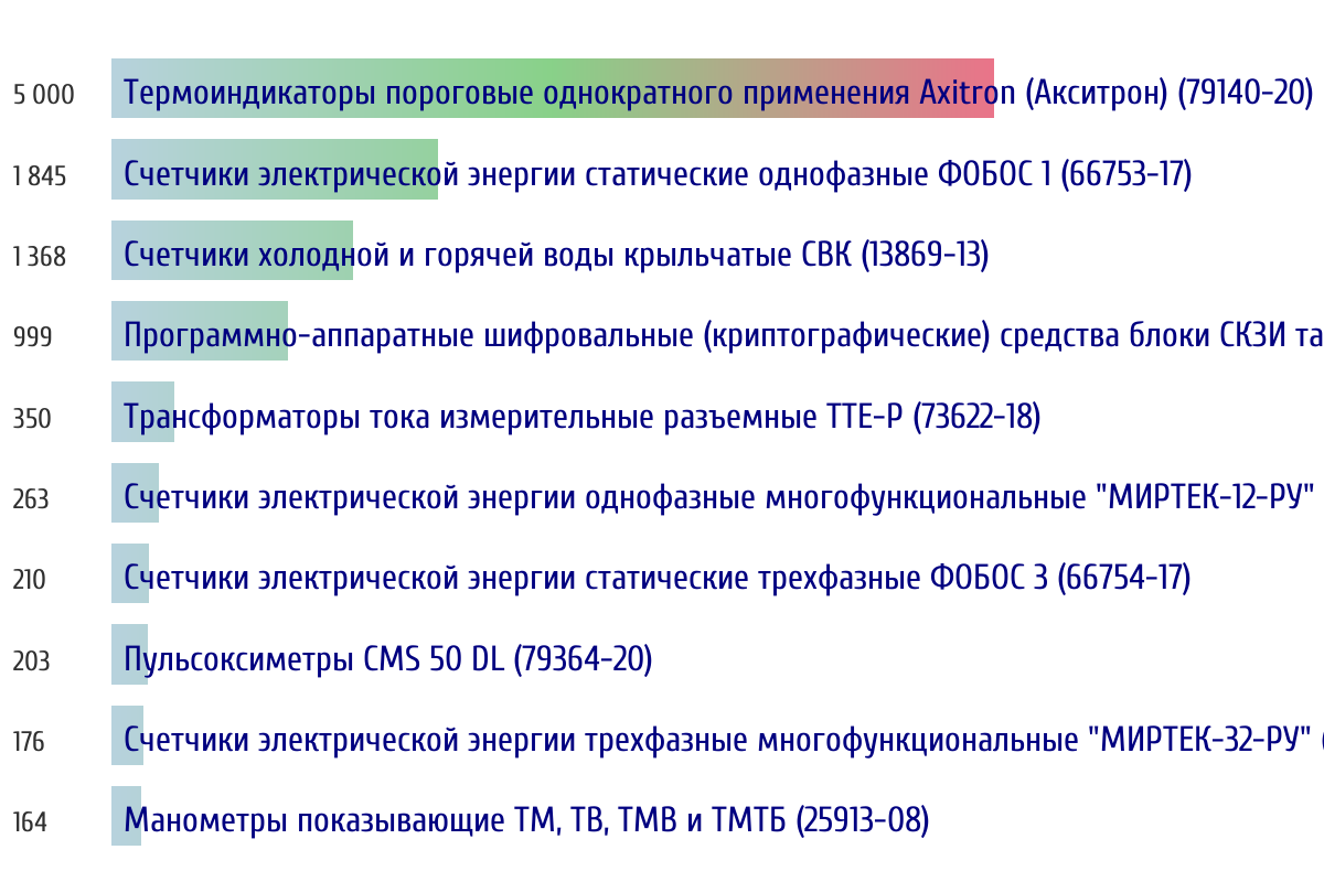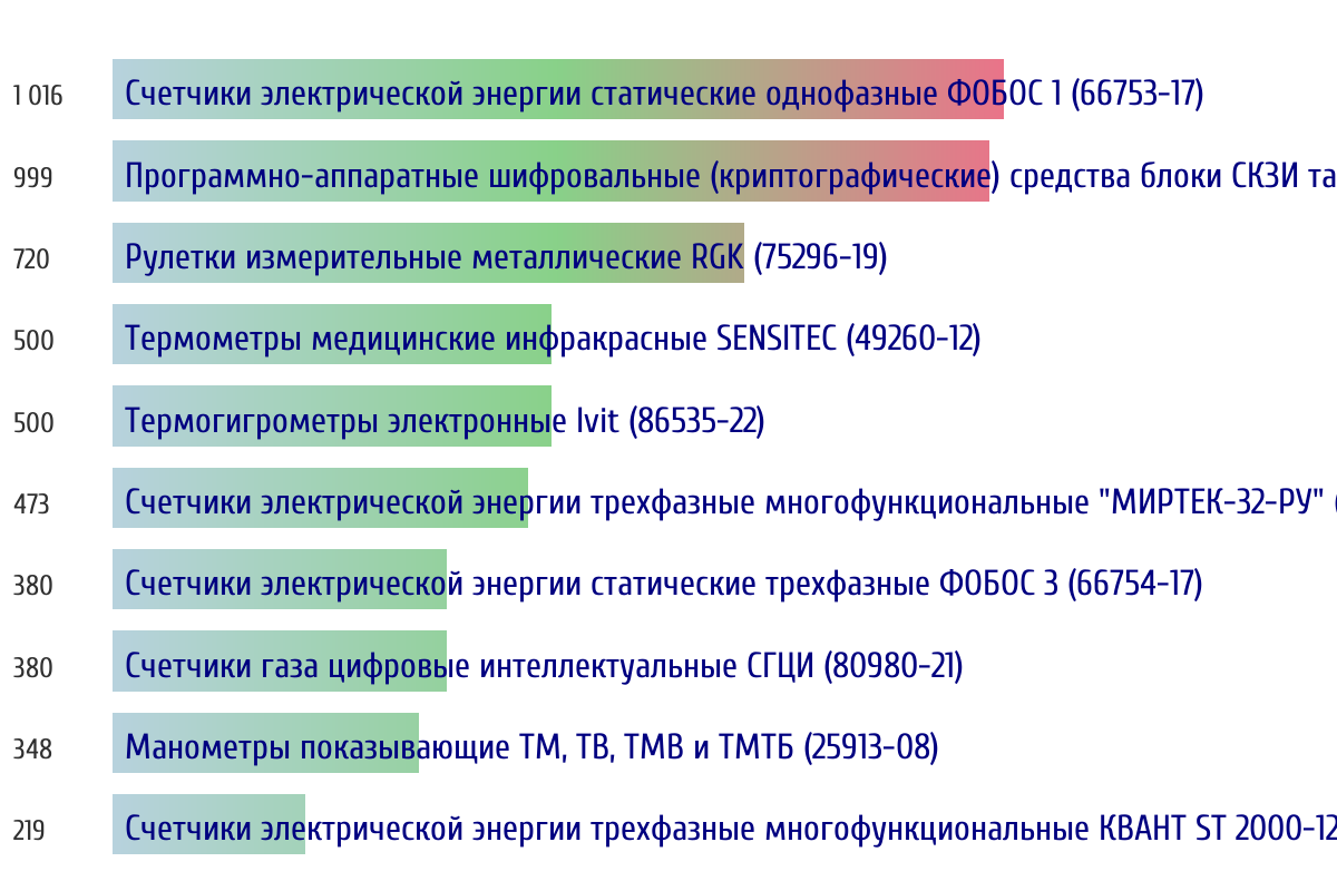 Топ 10 номеров госреестра по объему первичной поверки за прошлую неделю 📅 Данные за период с 2026-03-02 00:00:00 по 2026-03-08 23:59:59