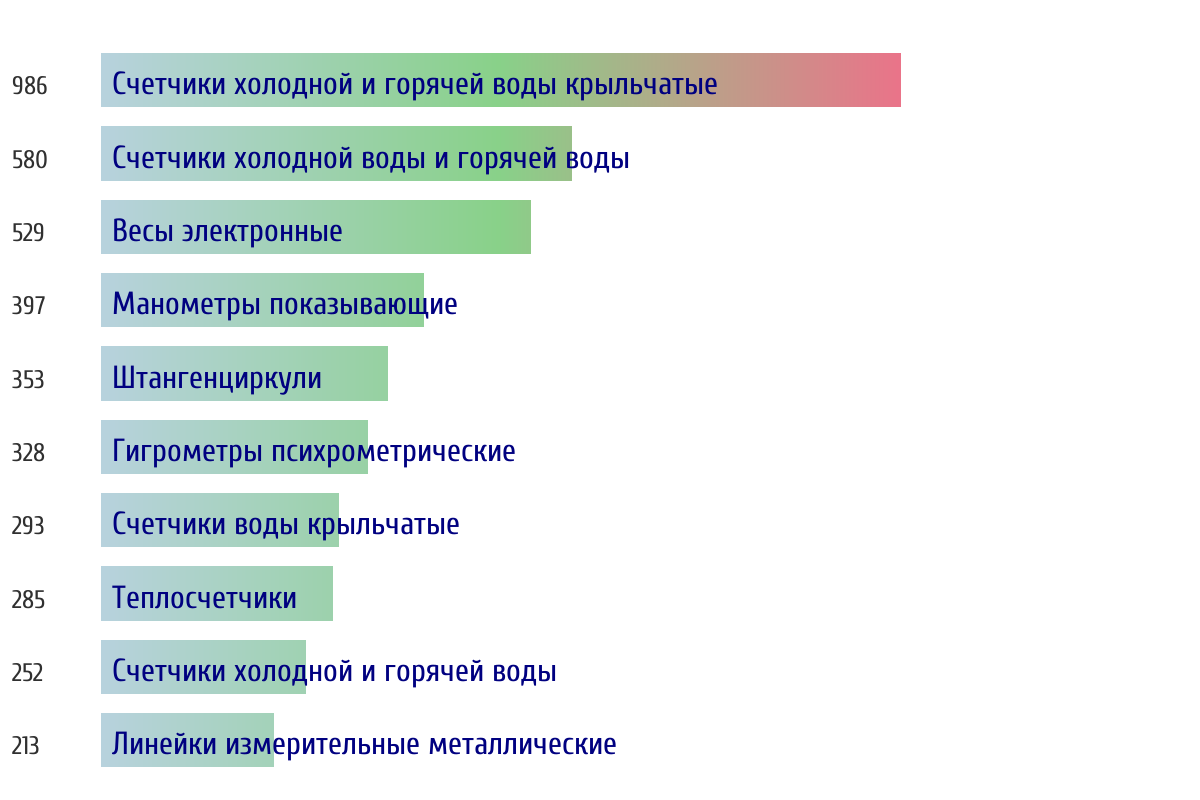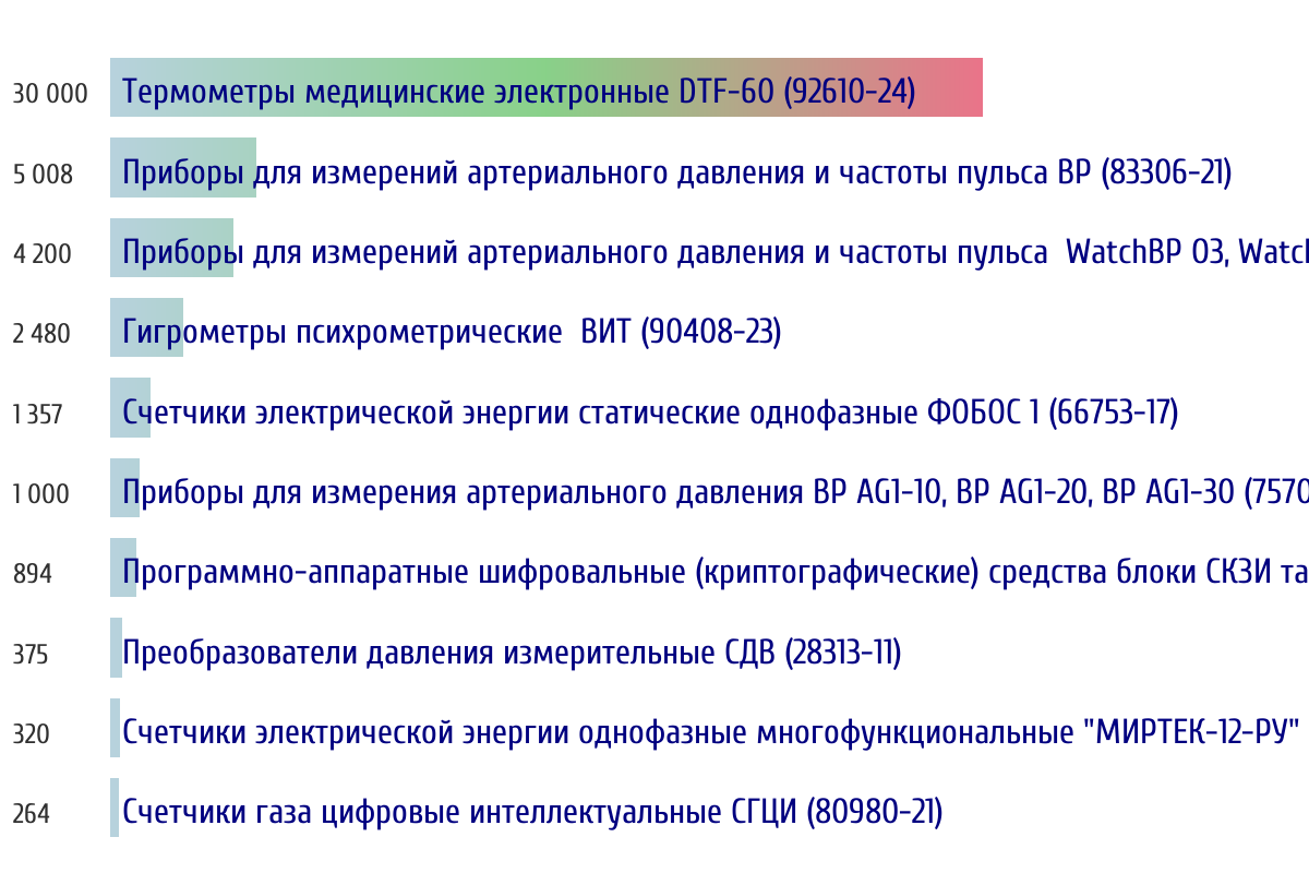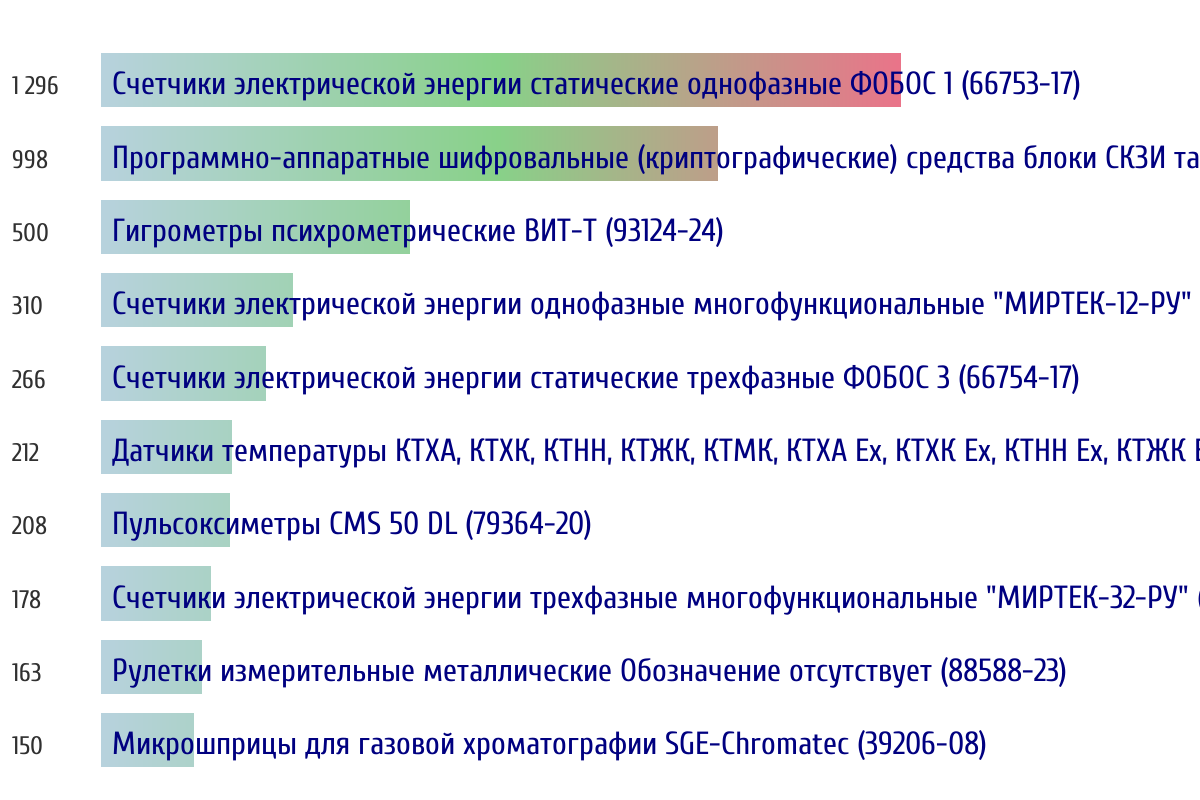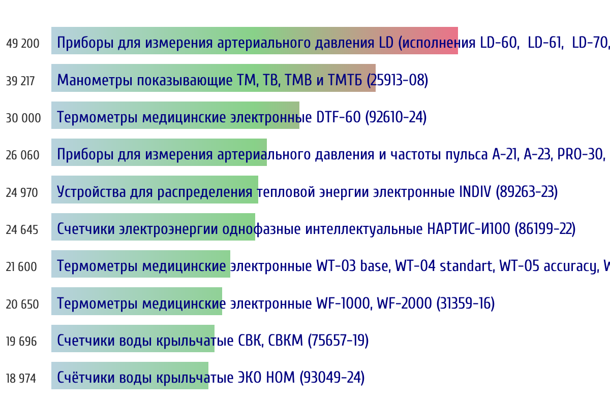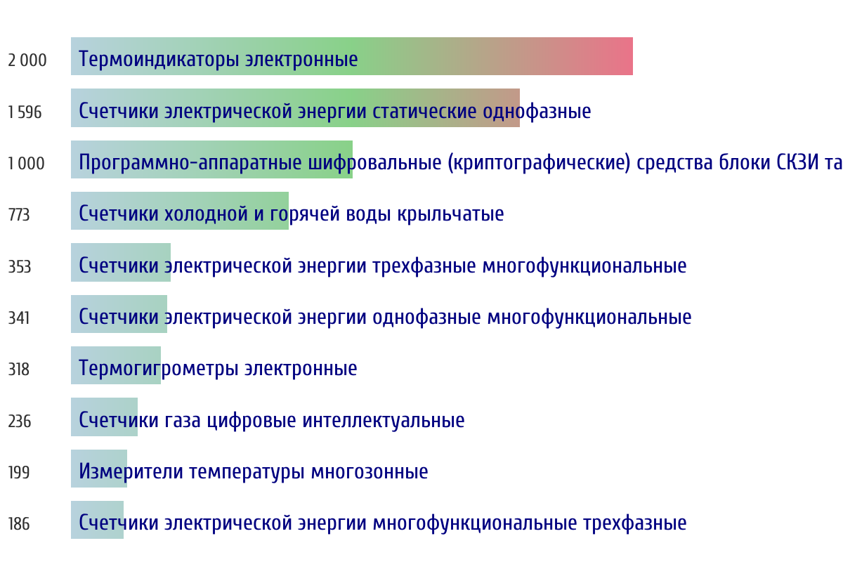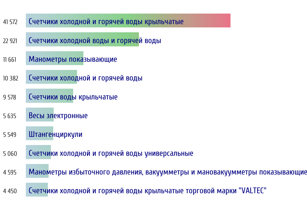 Топ 10 номеров госреестра по объему первичной поверки за прошлую неделю 📅 Данные за период с 2026-03-02 00:00:00 по 2026-03-08 23:59:59