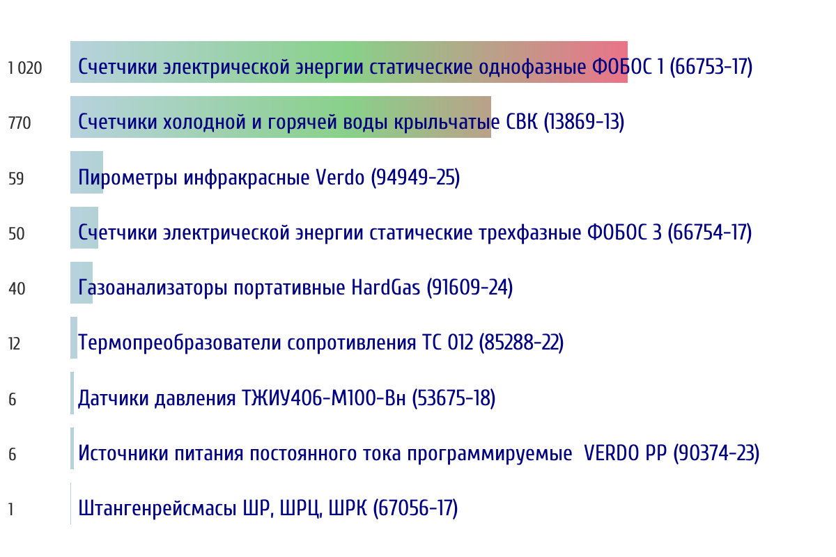 Топ 10 типов СИ по объему периодической поверки за прошлую неделю 📅 Данные за период с 2026-03-02 00:00:00 по 2026-03-08 23:59:59