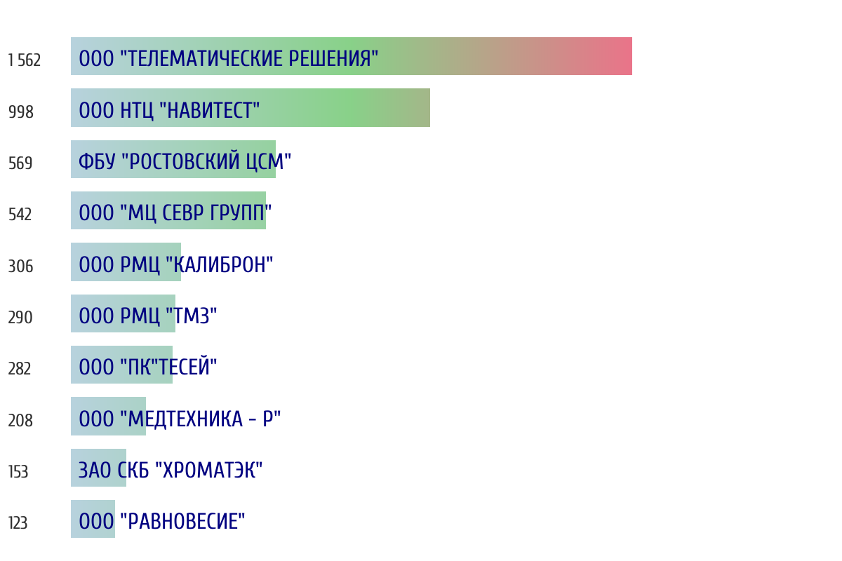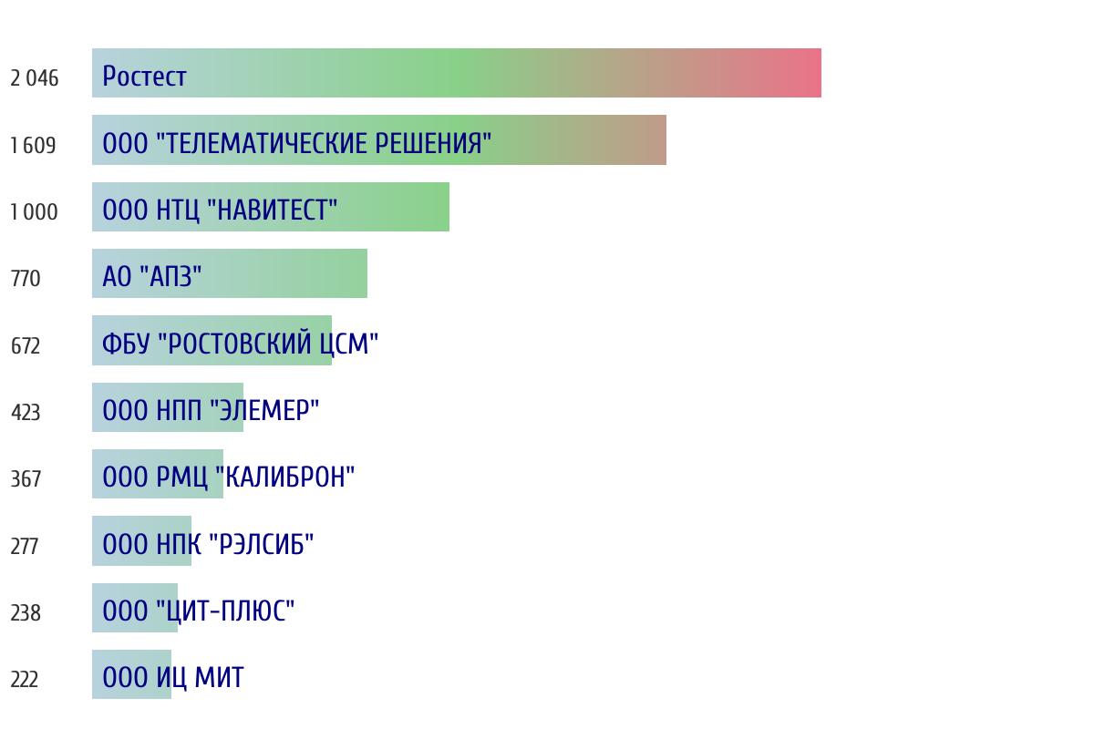 Топ 10 организаций-поверителей по объему периодической поверки за прошлый день 📅 Данные за период с 2026-03-14 00:00:00 по 2026-03-14 23:59:59
