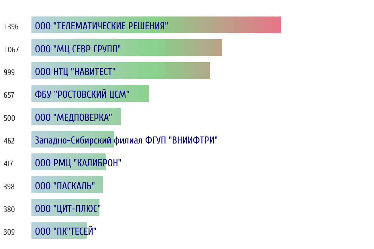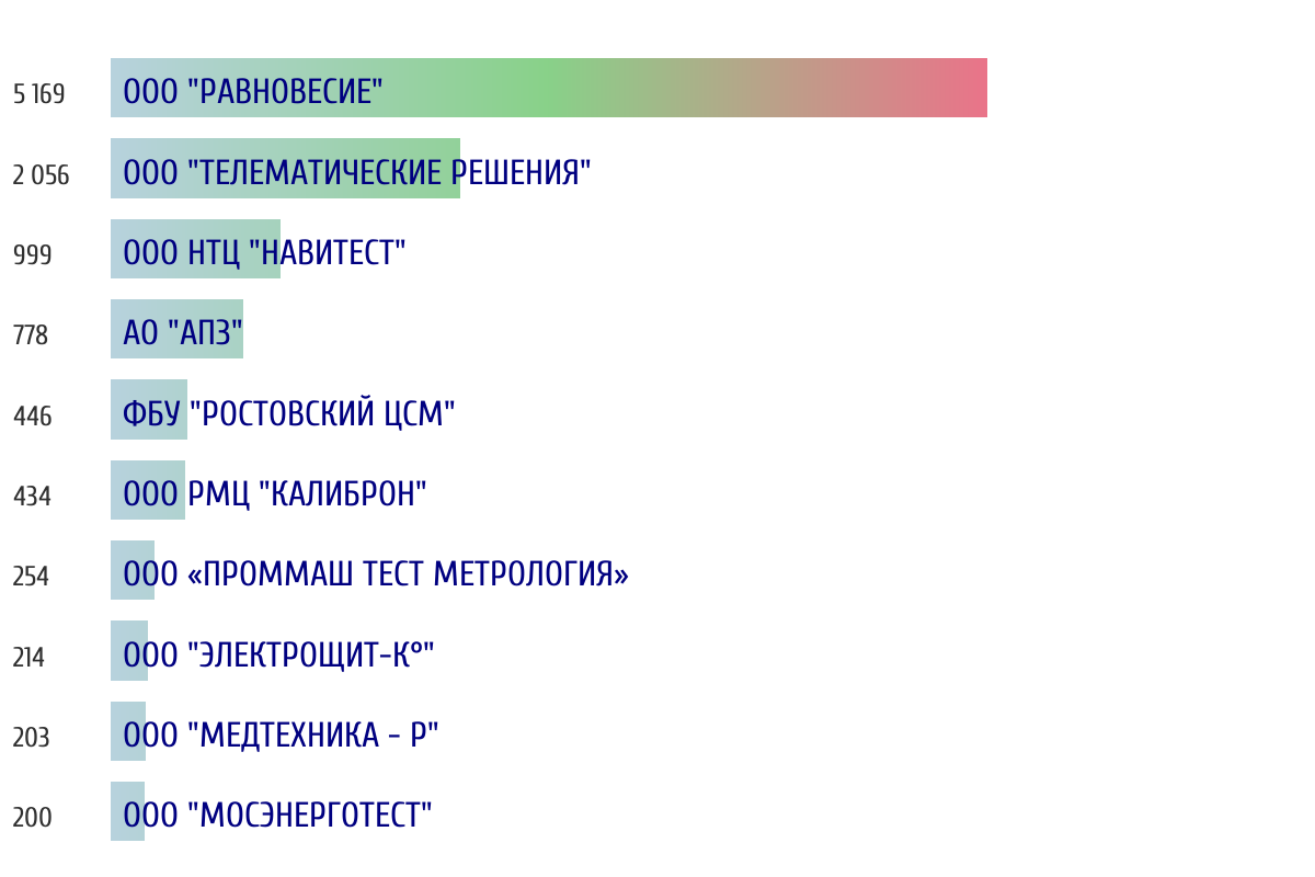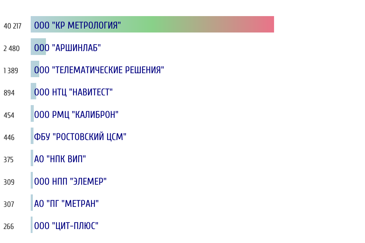 Топ 10 организаций-поверителей по объему периодической поверки за прошлую неделю 📅 Данные за период с 2026-03-02 00:00:00 по 2026-03-08 23:59:59