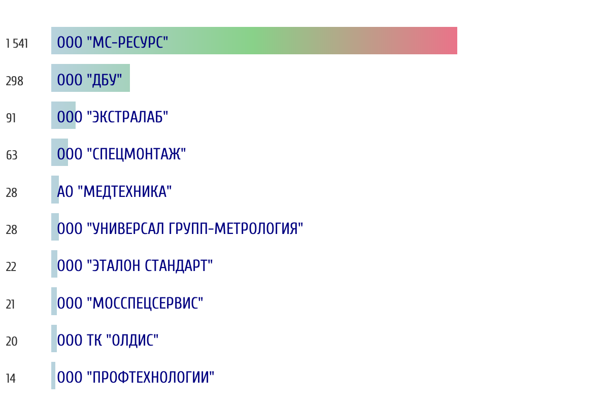 Топ 10 организаций-поверителей по объему периодической поверки за прошлый день 📅 Данные за период с 2026-03-09 00:00:00 по 2026-03-09 23:59:59