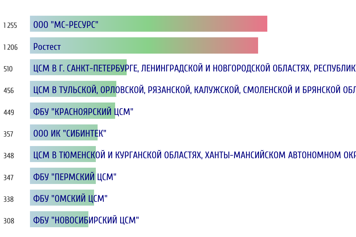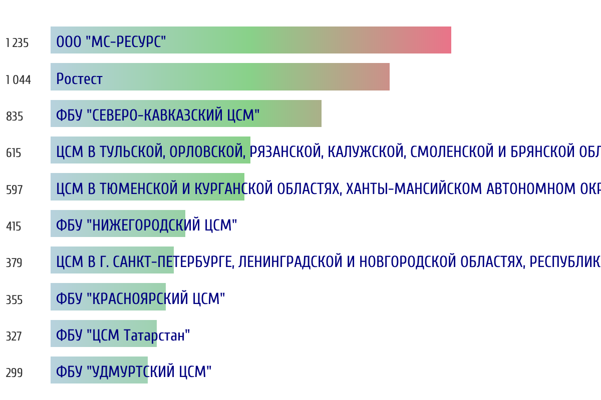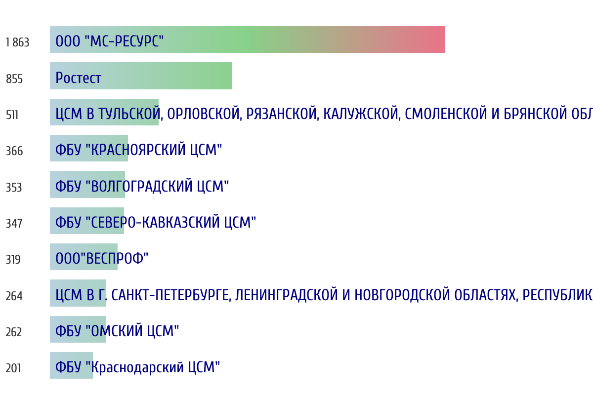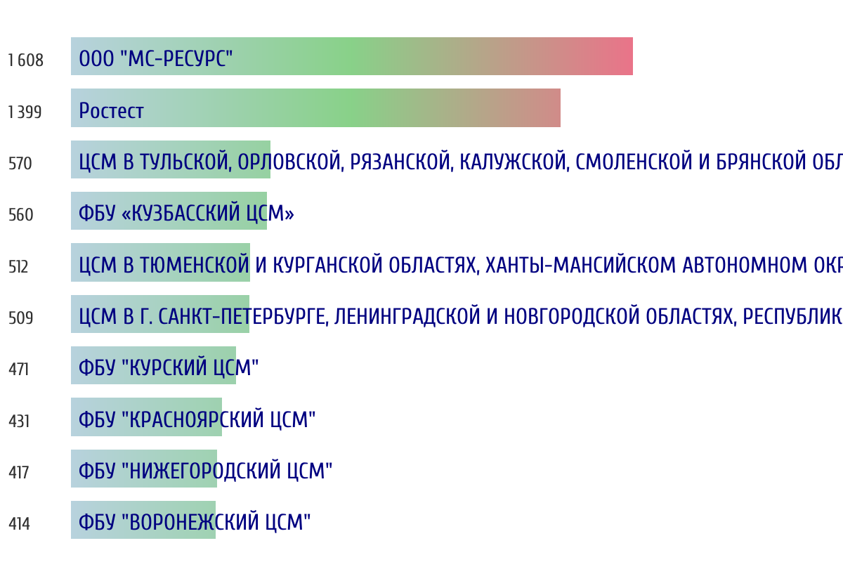 Топ 10 организаций-поверителей по объему первичной поверки за прошлый день 📅 Данные за период с 2026-03-14 00:00:00 по 2026-03-14 23:59:59