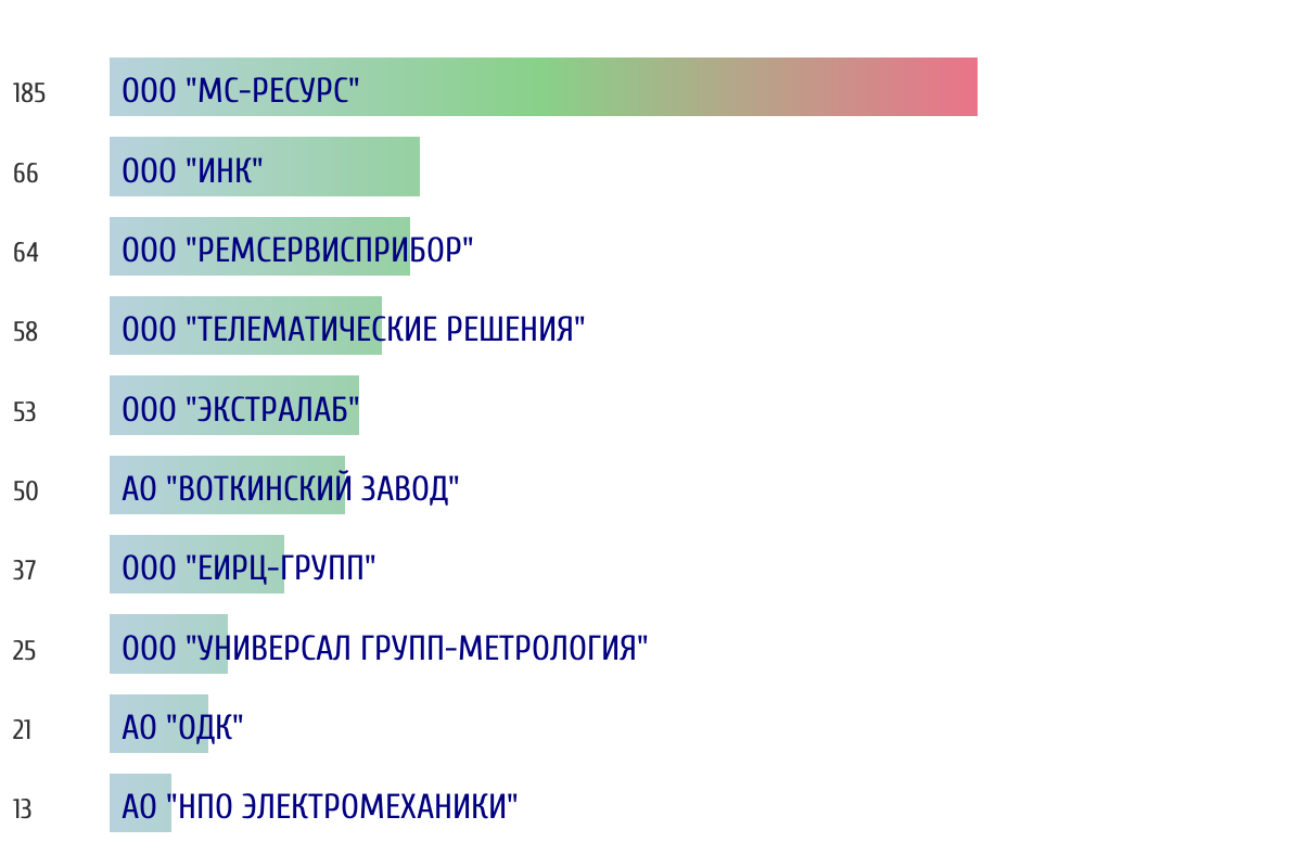 Топ 10 организаций-поверителей по объему периодической поверки за прошлый день 📅 Данные за период с 2026-03-10 00:00:00 по 2026-03-10 23:59:59