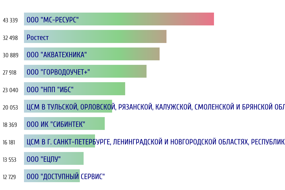 Топ 10 организаций-поверителей по объему первичной поверки за прошлый день 📅 Данные за период с 2026-03-11 00:00:00 по 2026-03-11 23:59:59