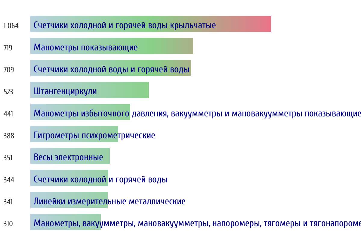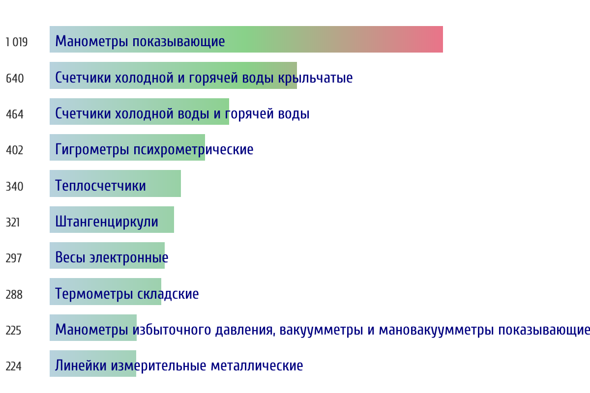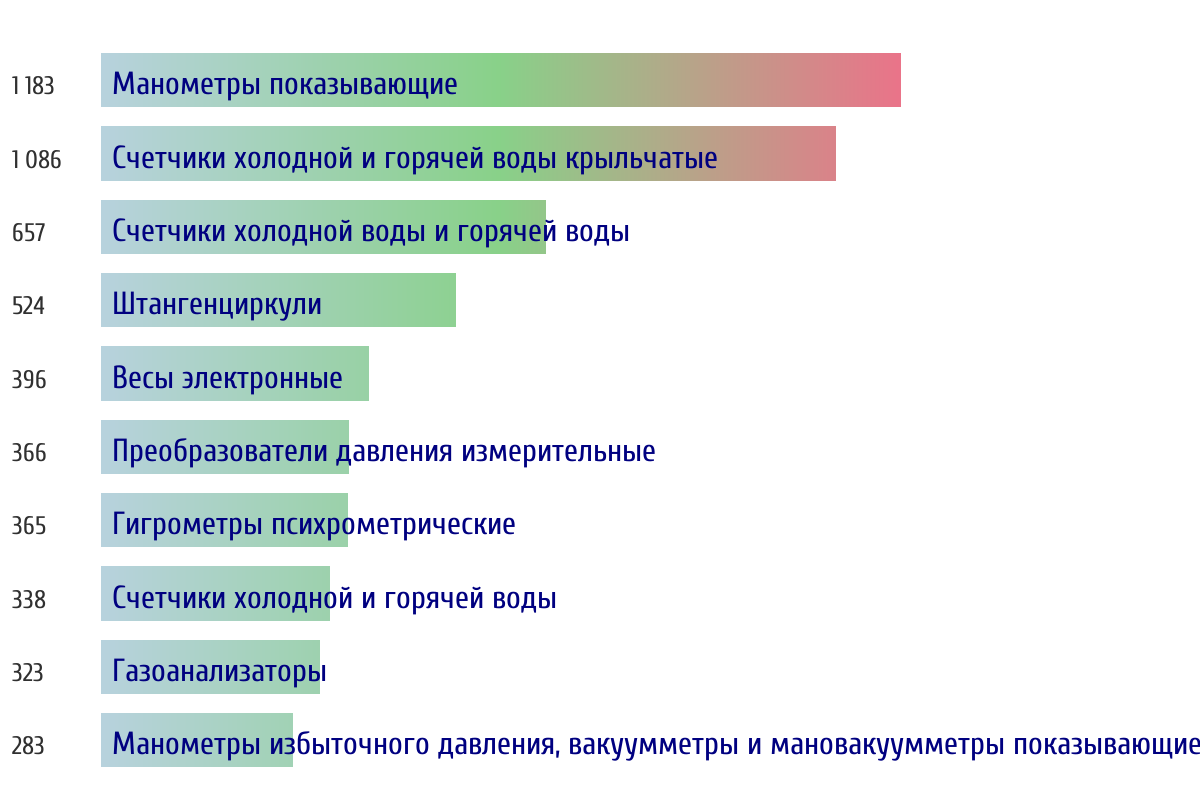 Топ 10 типов СИ по объему первичной поверки за прошлый день 📅 Данные за период с 2026-03-10 00:00:00 по 2026-03-10 23:59:59