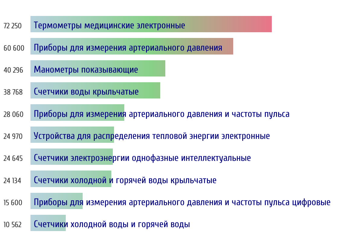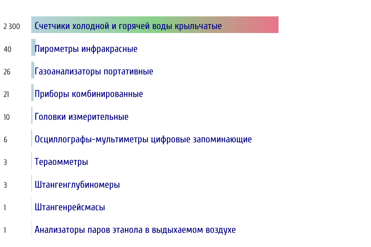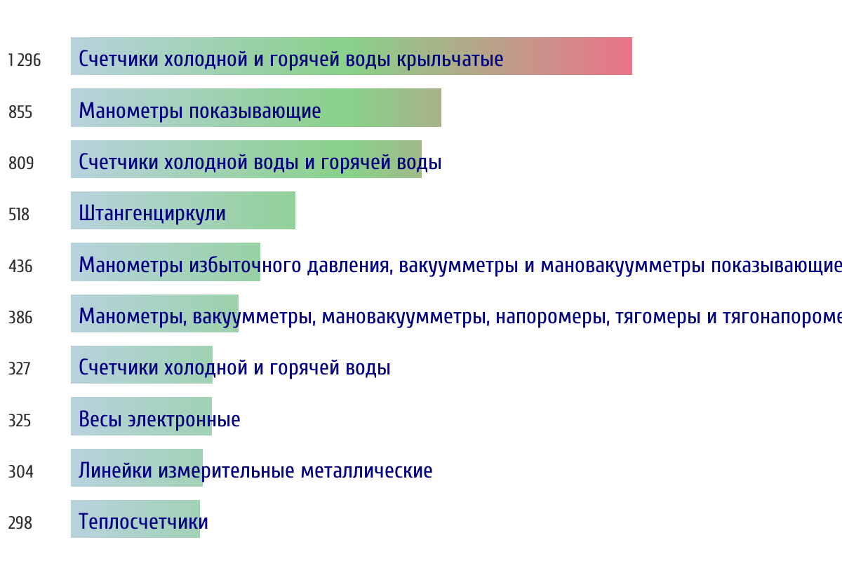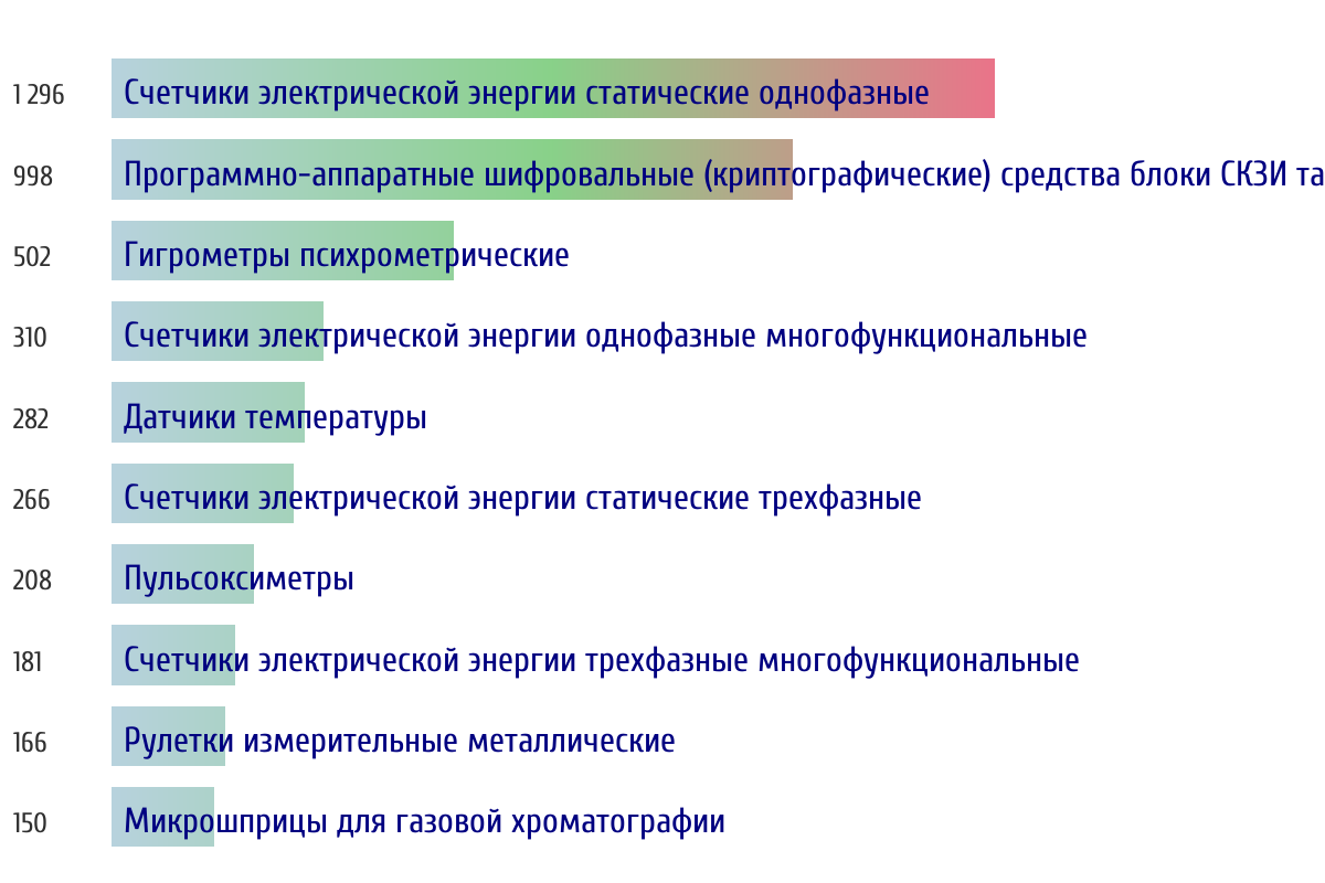 Топ 10 типов СИ по объему первичной поверки за прошлый день 📅 Данные за период с 2026-03-10 00:00:00 по 2026-03-10 23:59:59