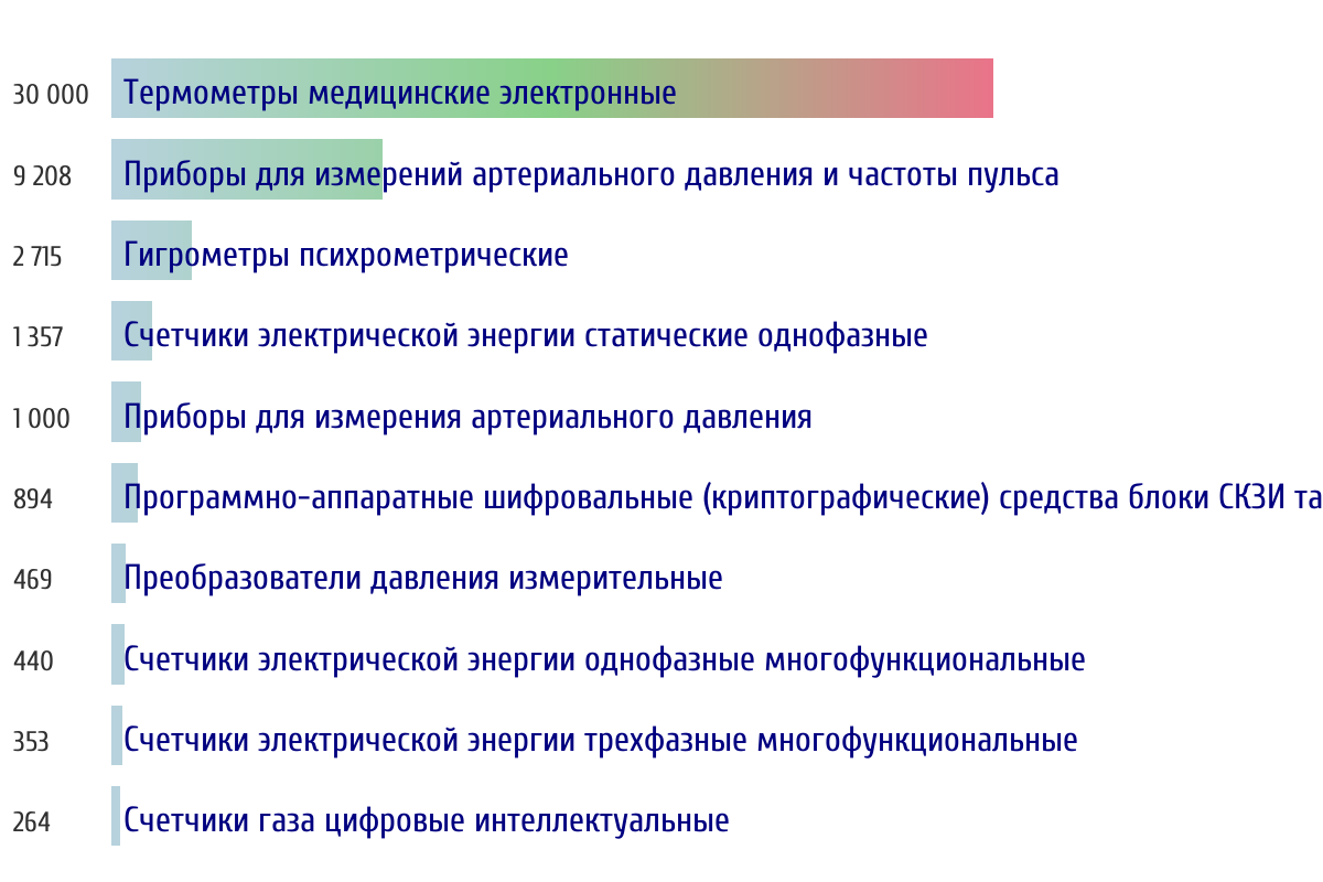 Топ 10 типов СИ по объему первичной поверки за прошлый месяц ? Данные за период с 2026-01-01 00:00:00 по 2026-01-31 23:59:59