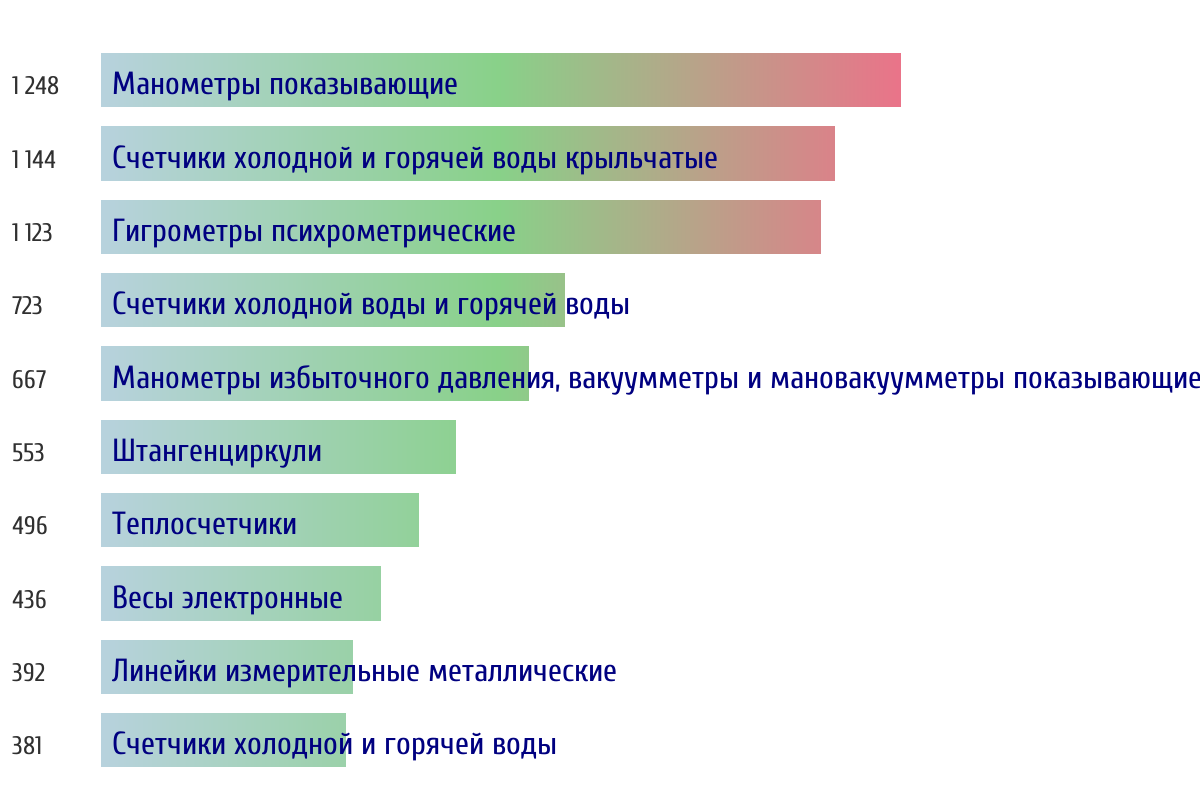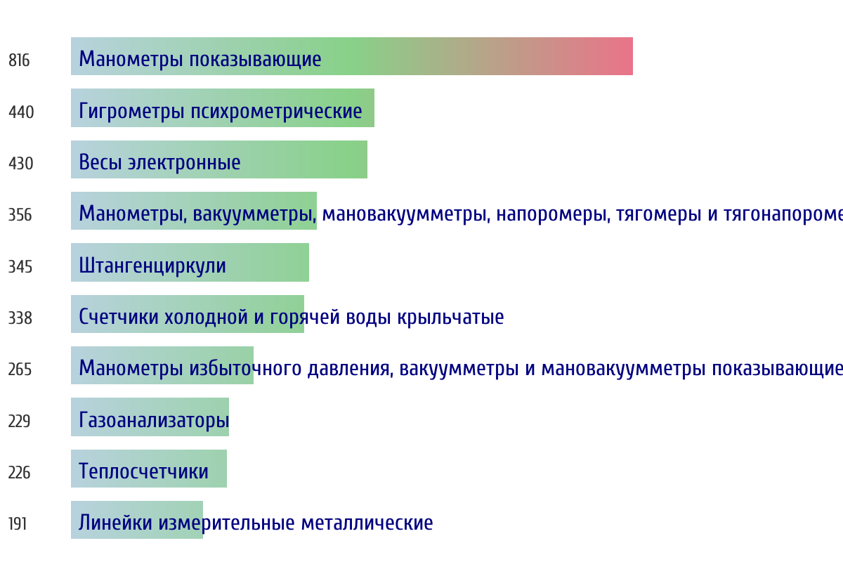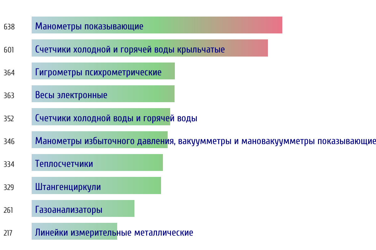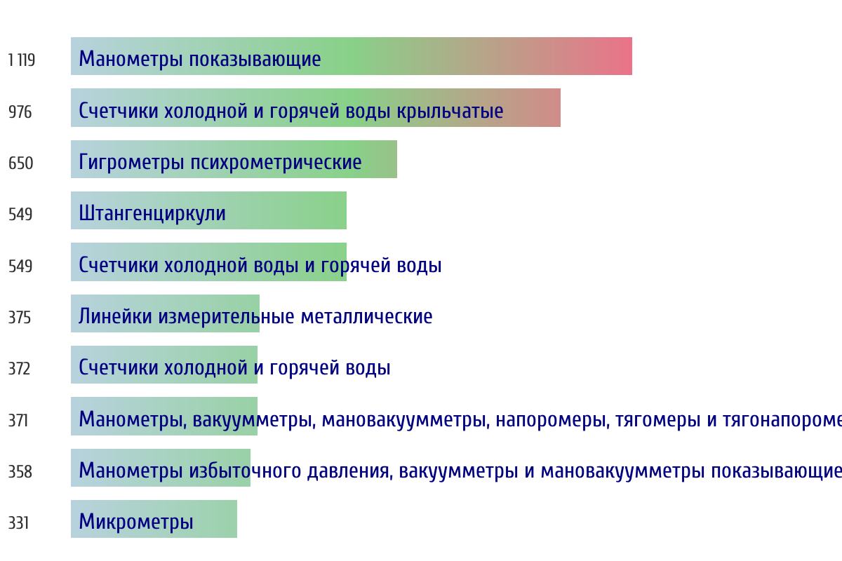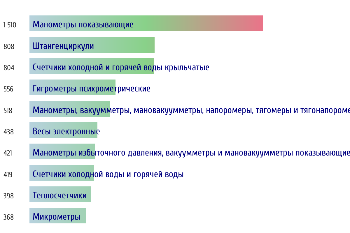 Ежедневная аналитика рынка средств измерений на основе открытых данных: - Количество произведенных СИ по типам - Объем первичной и периодической поверки - Топ организаций-поверителей по объему