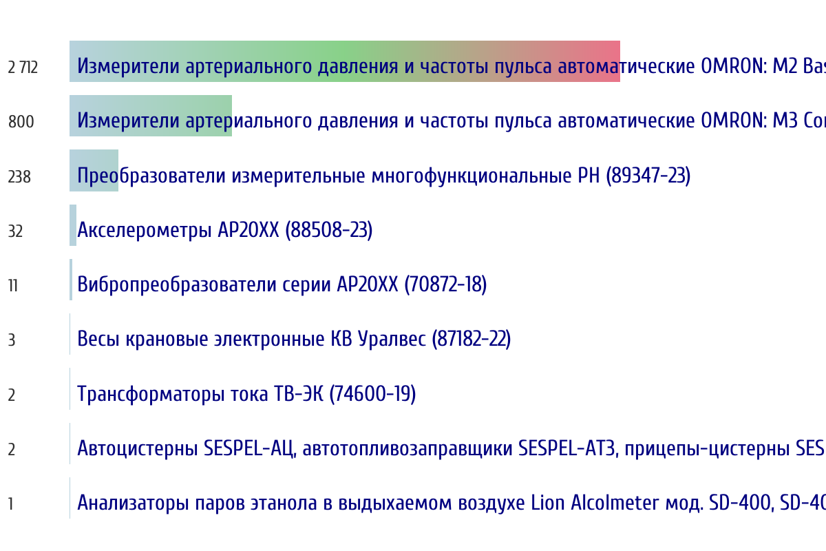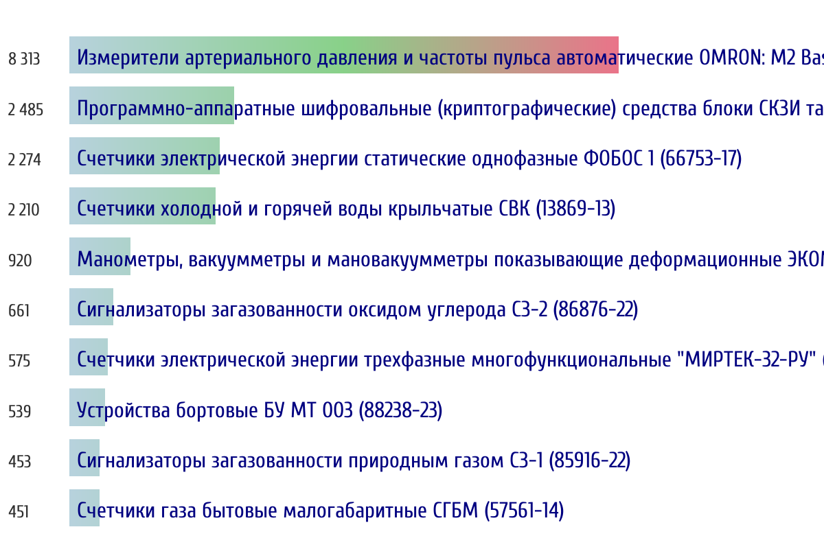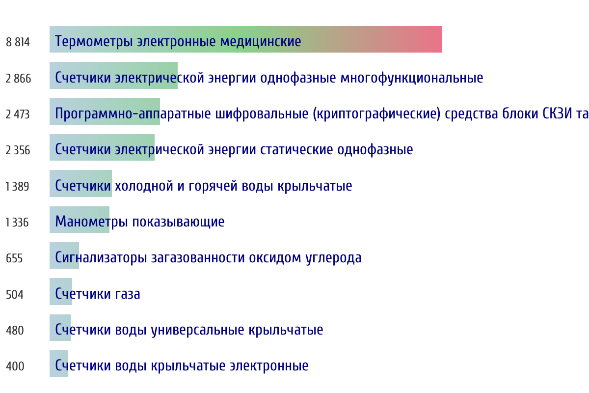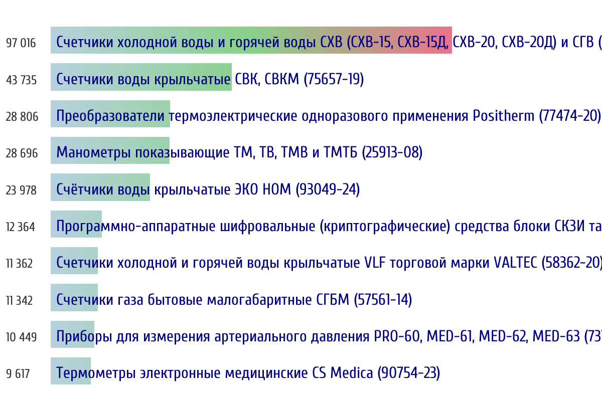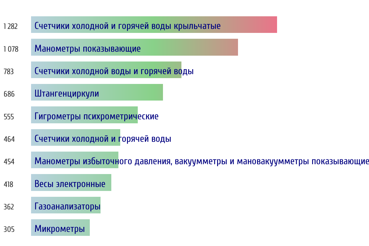 Ежедневная аналитика рынка средств измерений на основе открытых данных: - Количество произведенных СИ по типам - Объем первичной и периодической поверки - Топ организаций-поверителей по объему
