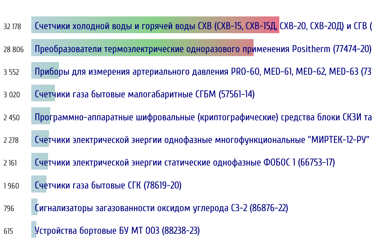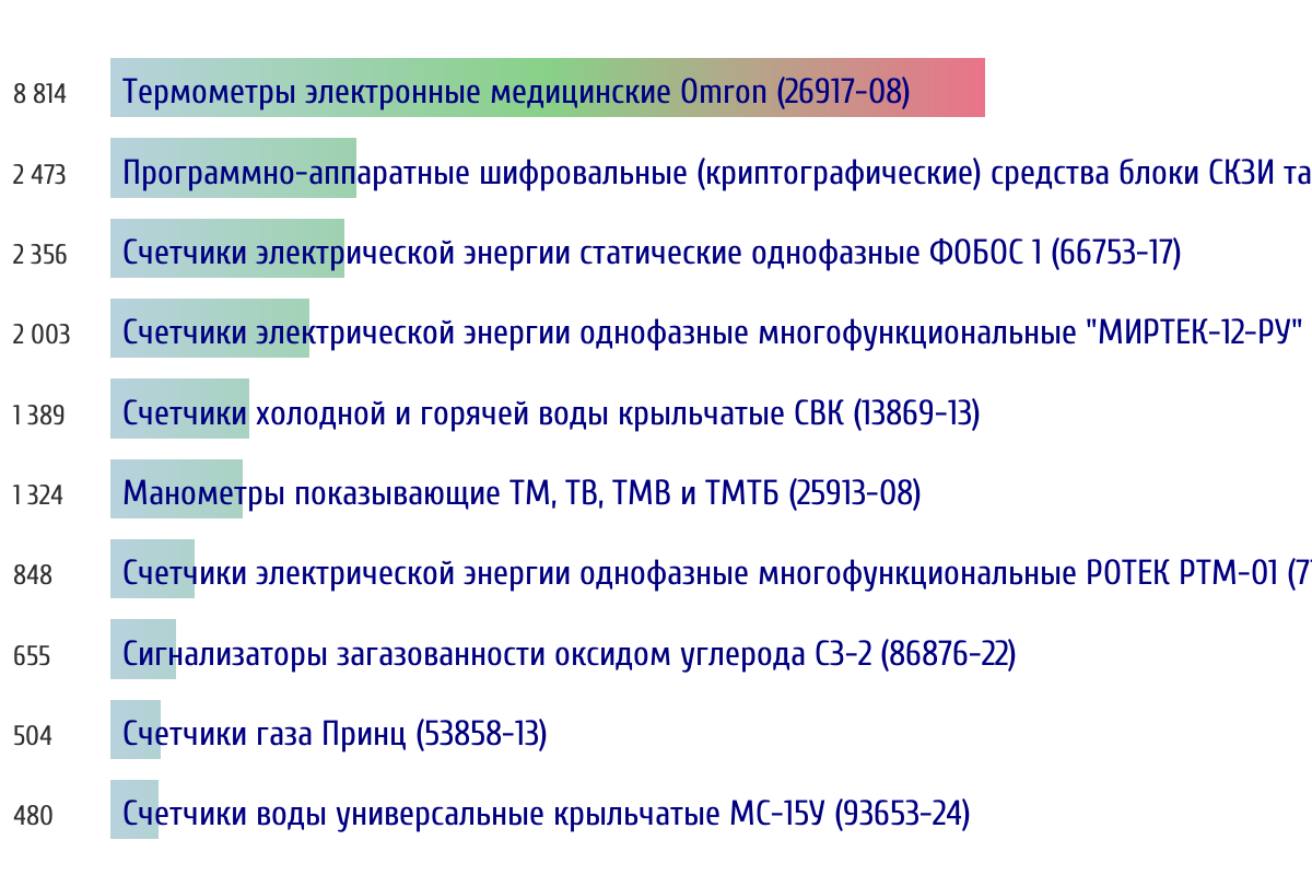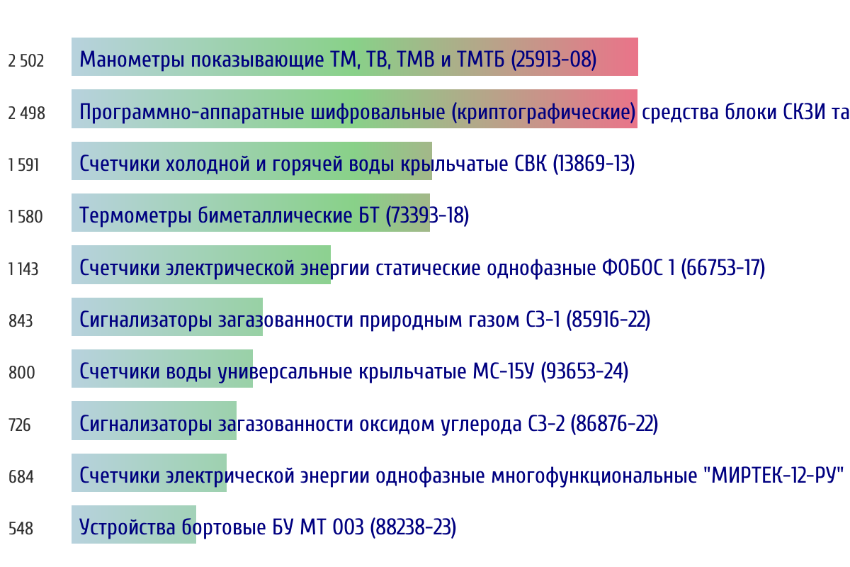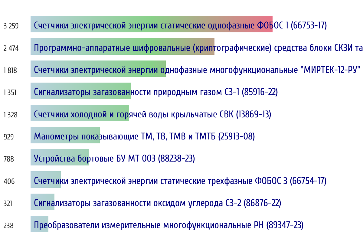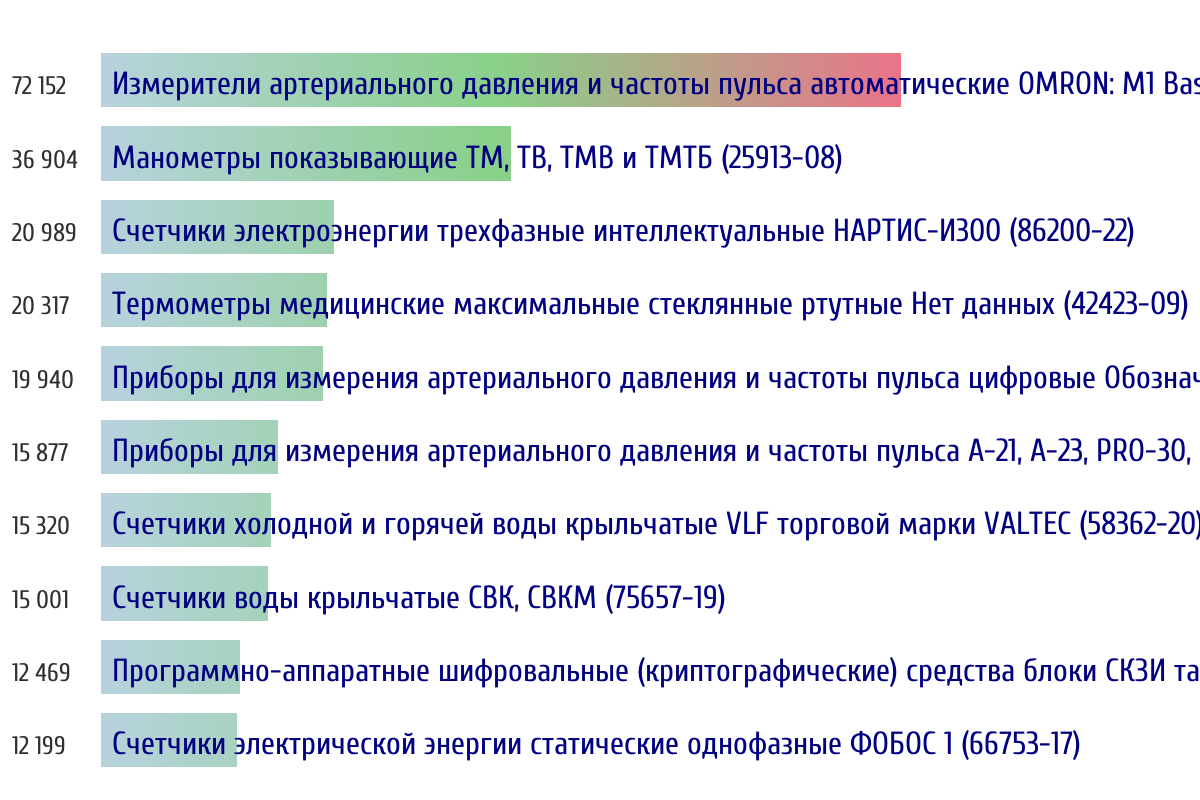 Ежедневная аналитика рынка средств измерений на основе открытых данных: - Количество произведенных СИ по типам - Объем первичной и периодической поверки - Топ организаций-поверителей по объему