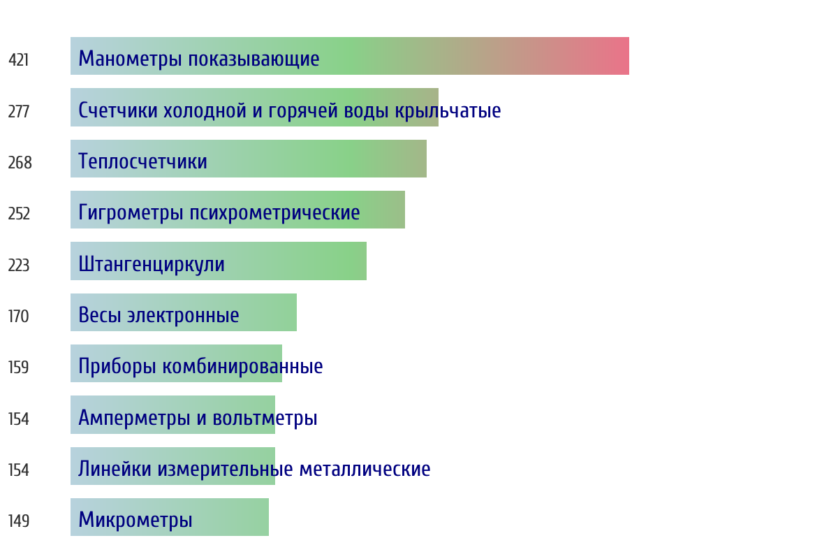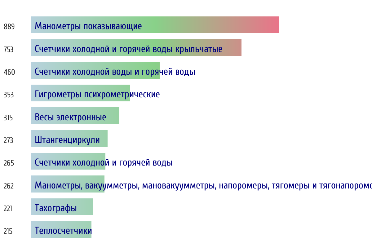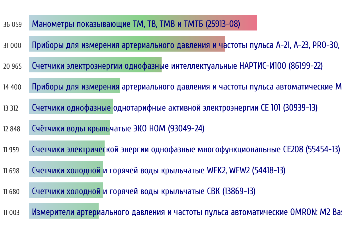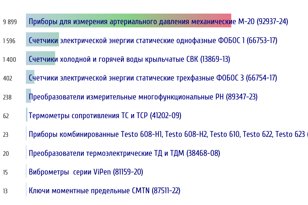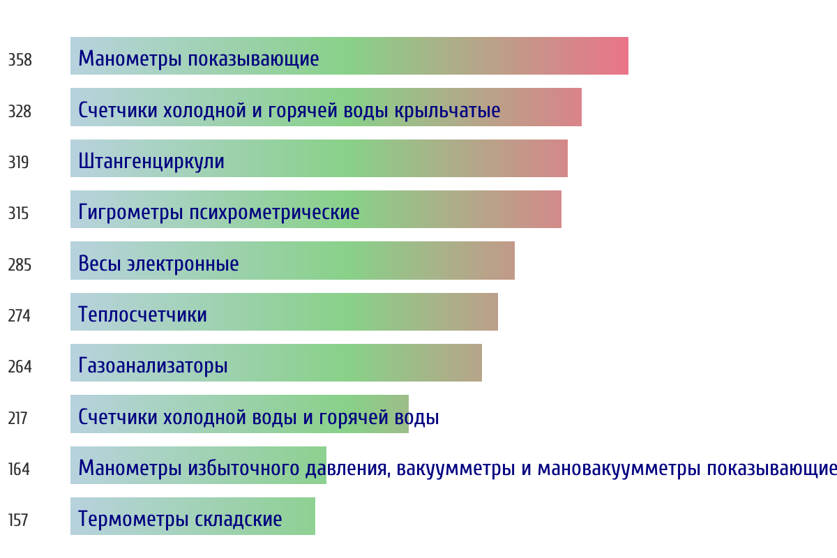 Ежедневная аналитика рынка средств измерений на основе открытых данных: - Количество произведенных СИ по типам - Объем первичной и периодической поверки - Топ организаций-поверителей по объему
