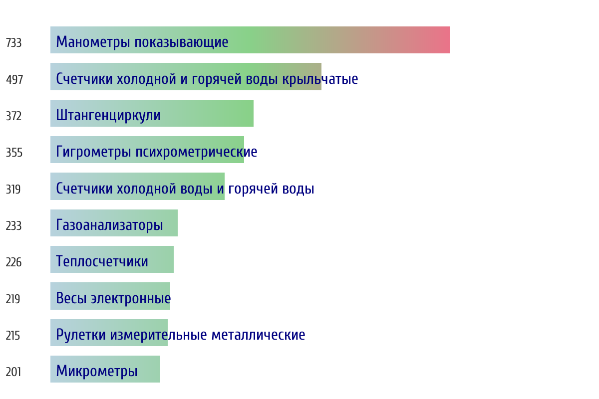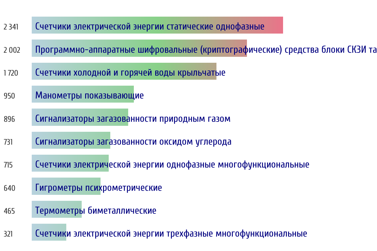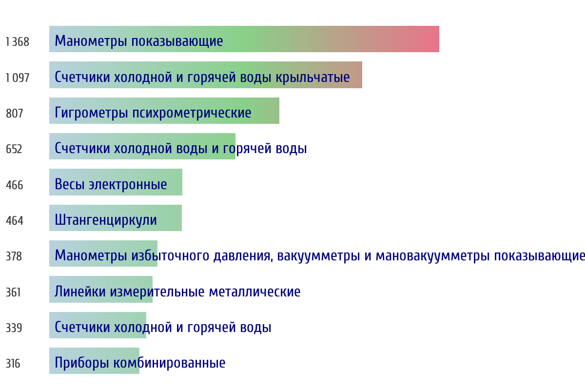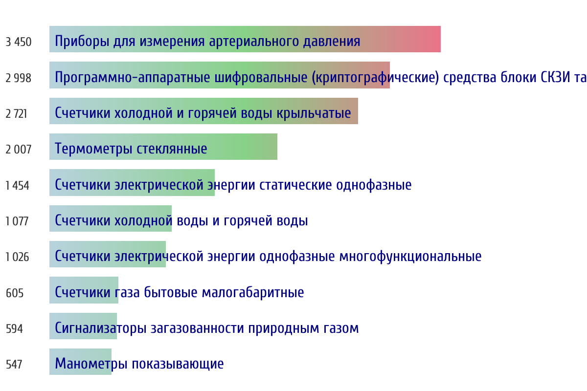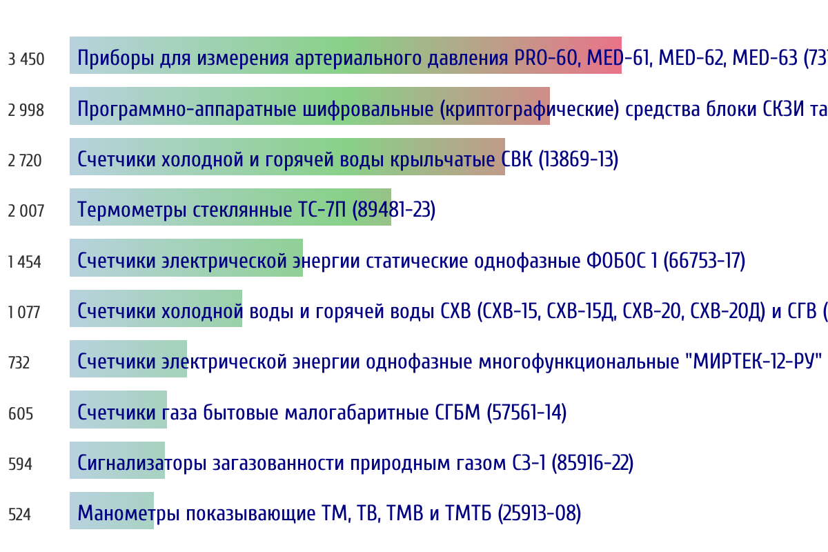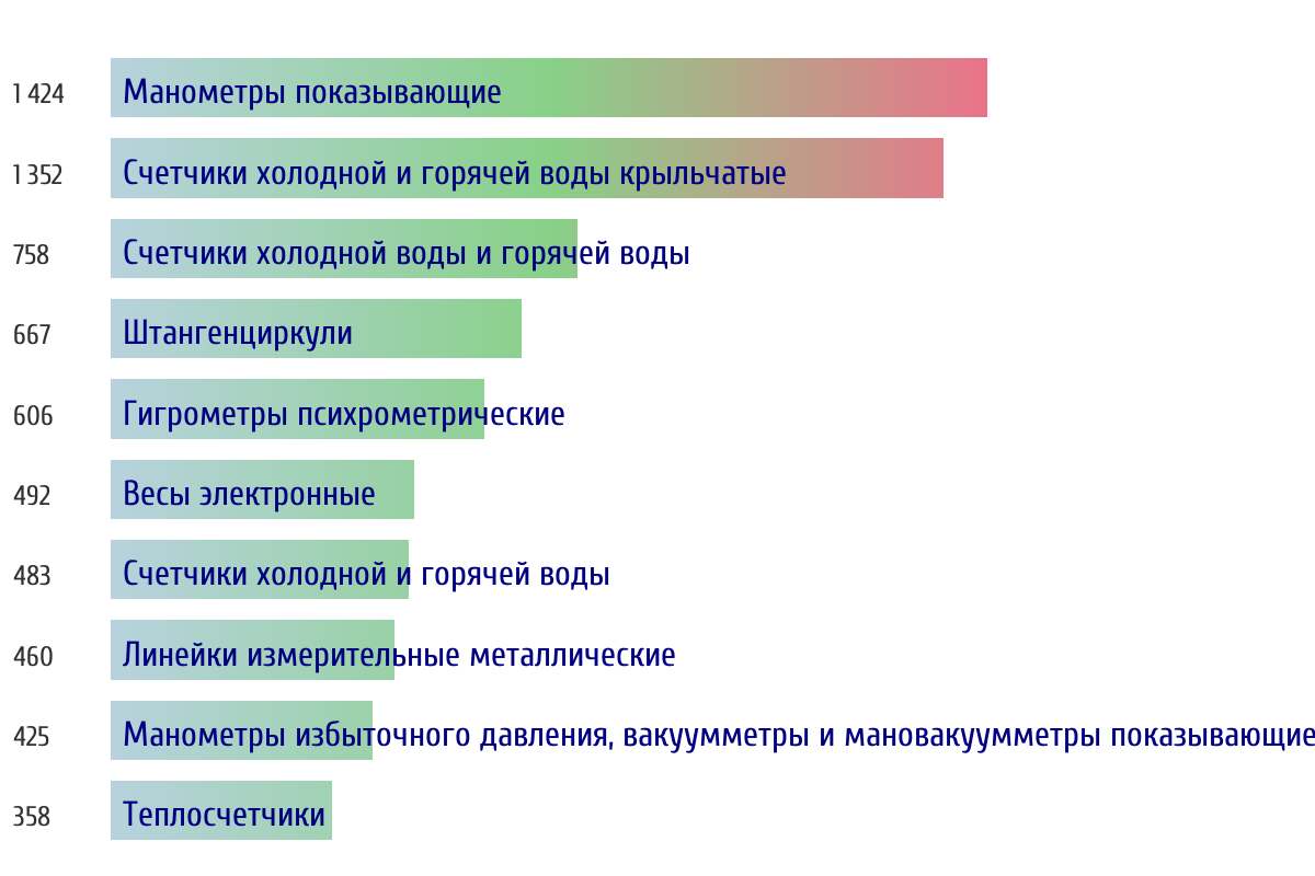 Ежедневная аналитика рынка средств измерений на основе открытых данных: - Количество произведенных СИ по типам - Объем первичной и периодической поверки - Топ организаций-поверителей по объему