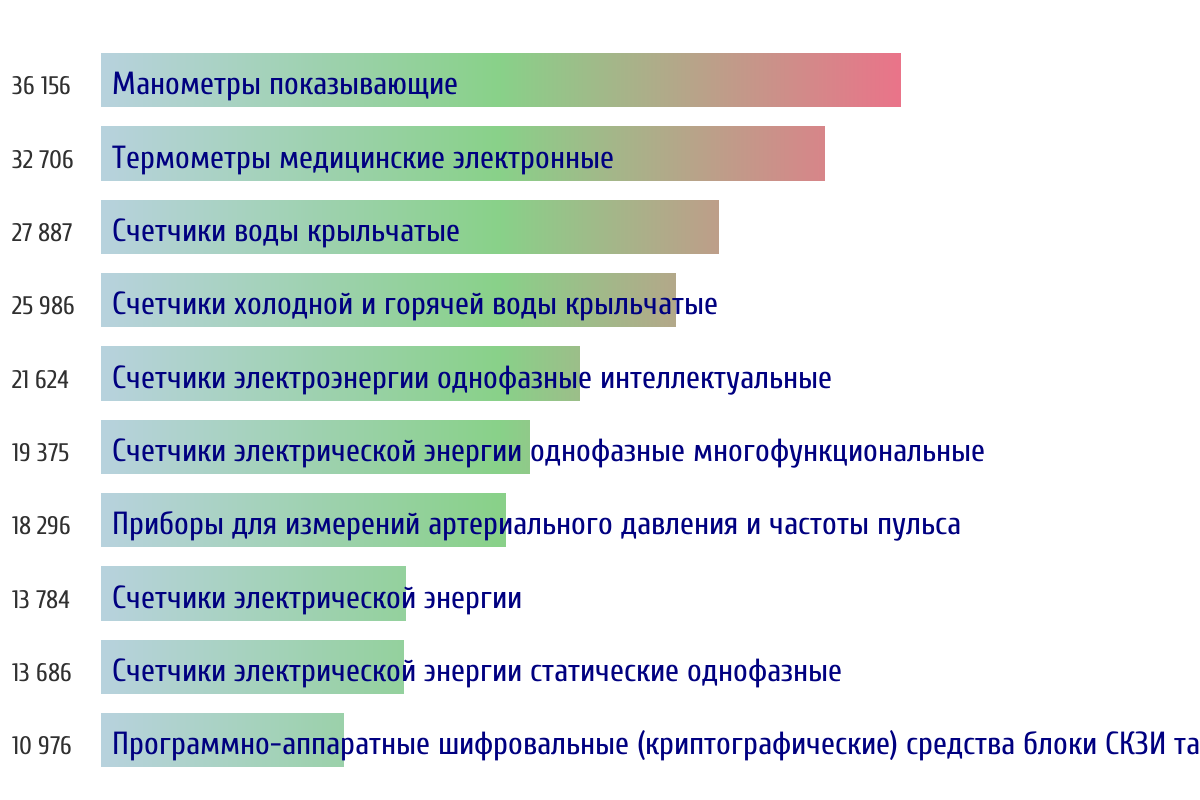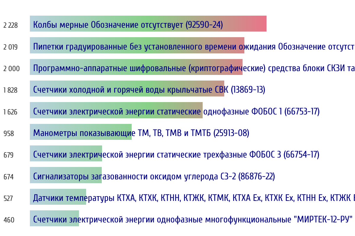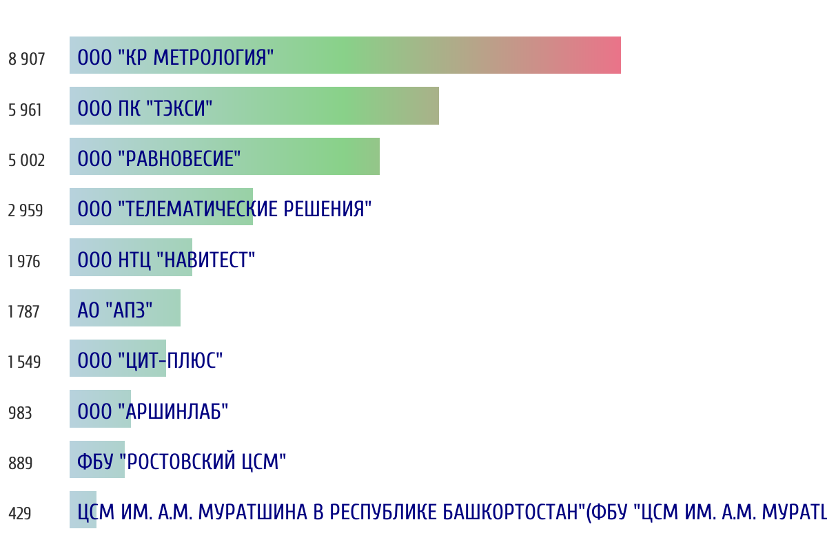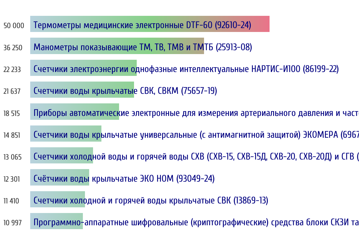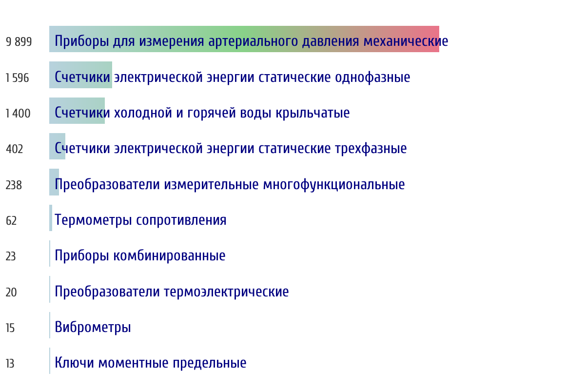 Ежедневная аналитика рынка средств измерений на основе открытых данных: - Количество произведенных СИ по типам - Объем первичной и периодической поверки - Топ организаций-поверителей по объему
