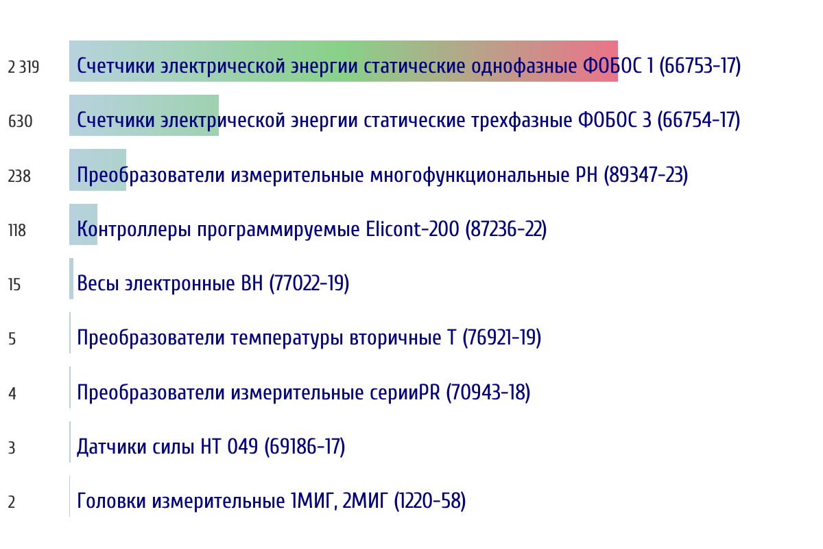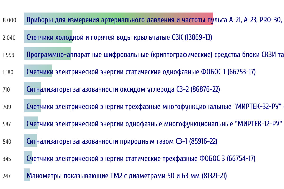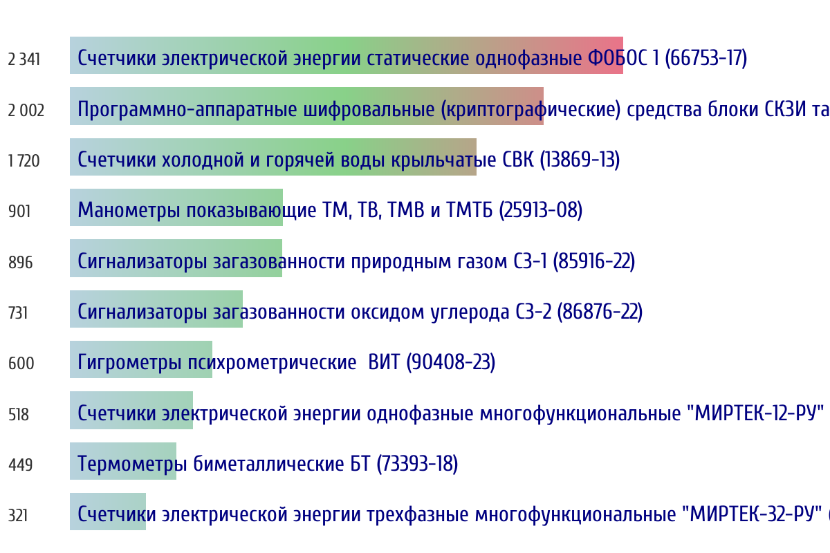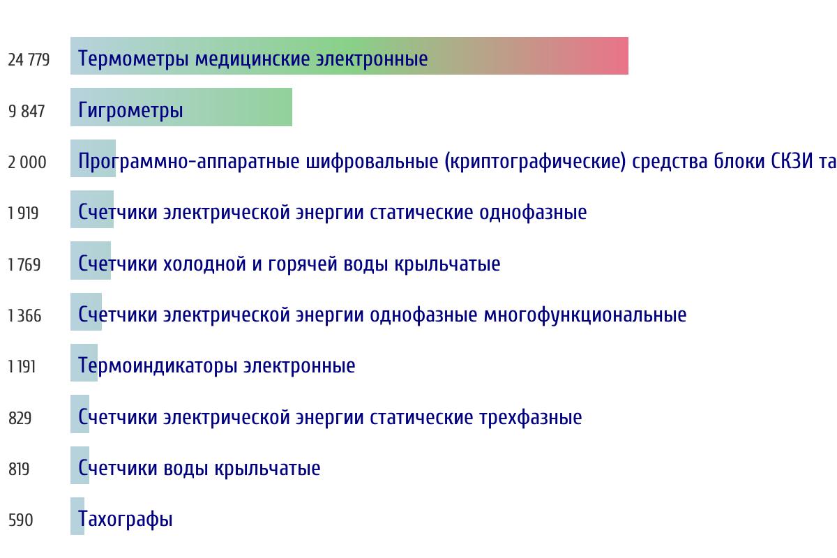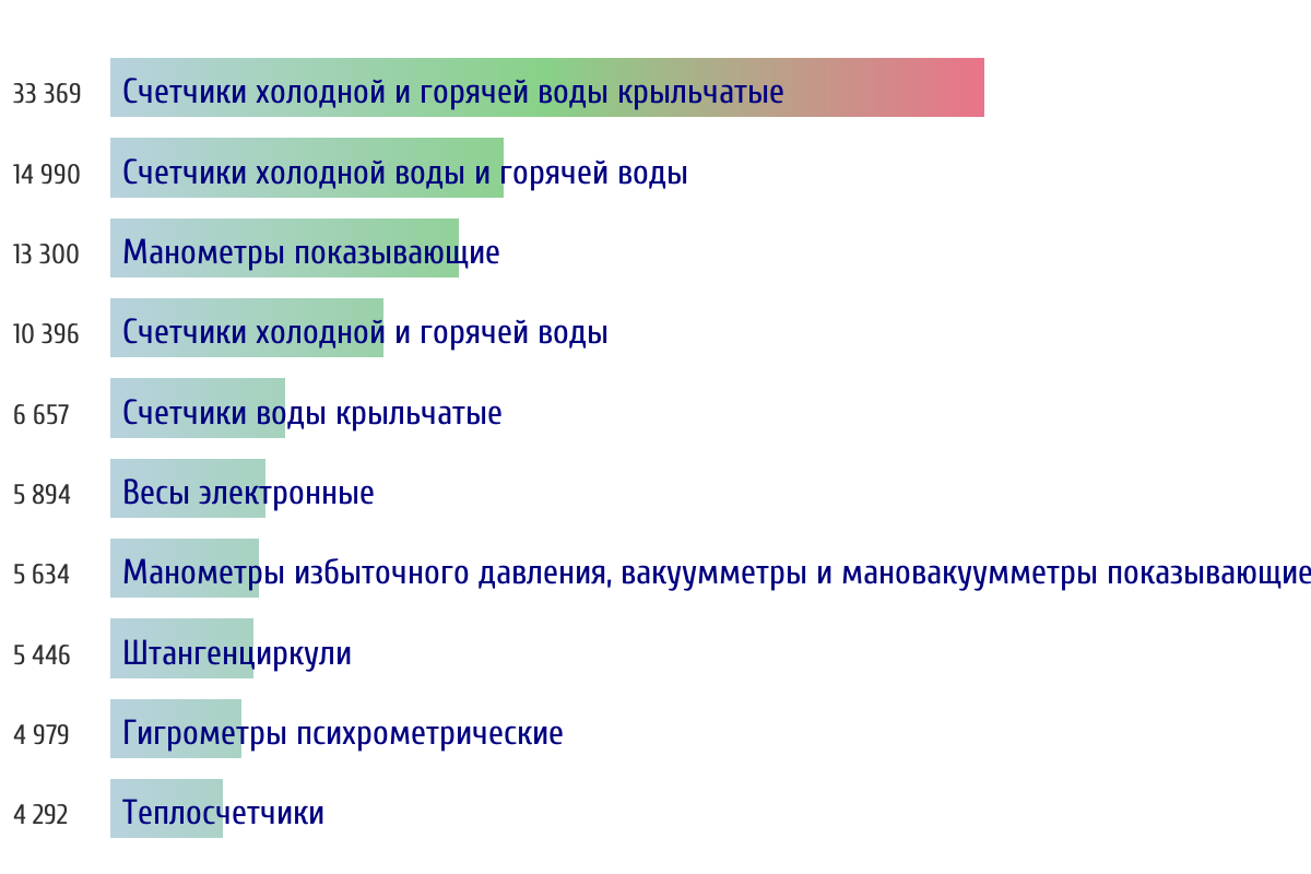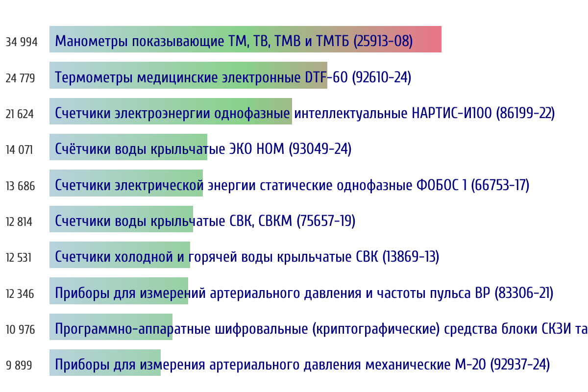 Ежедневная аналитика рынка средств измерений на основе открытых данных: - Количество произведенных СИ по типам - Объем первичной и периодической поверки - Топ организаций-поверителей по объему