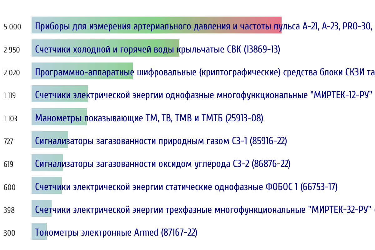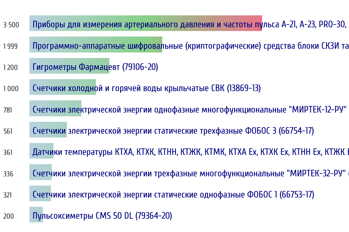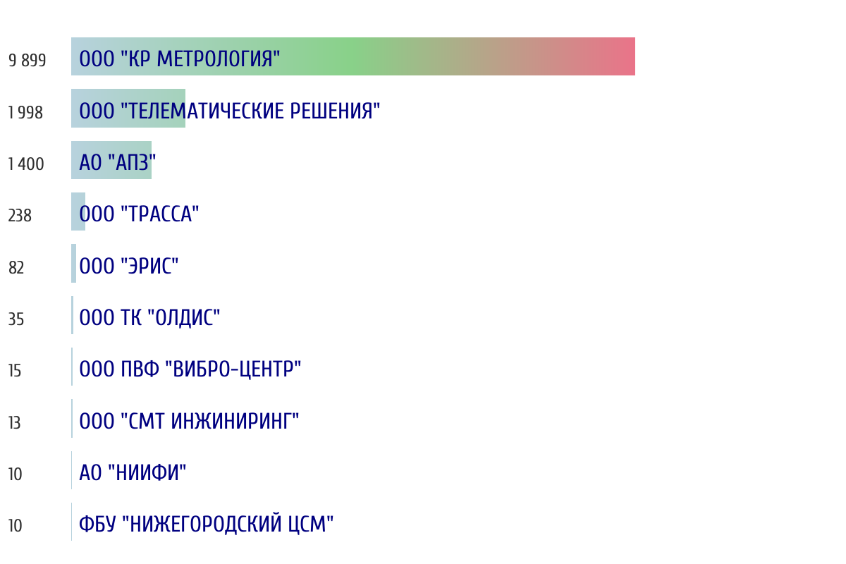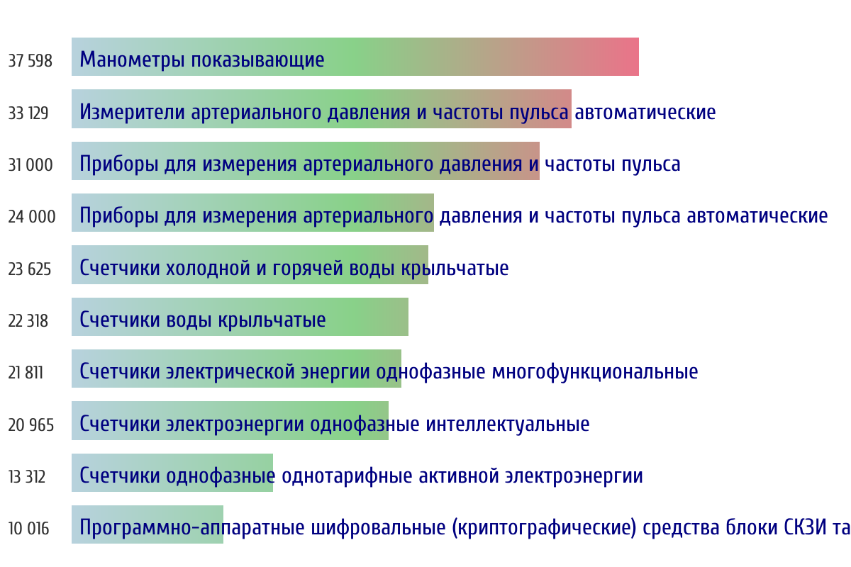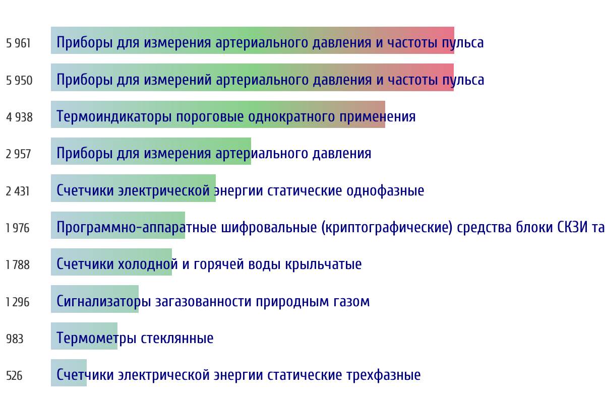 Ежедневная аналитика рынка средств измерений на основе открытых данных: - Количество произведенных СИ по типам - Объем первичной и периодической поверки - Топ организаций-поверителей по объему